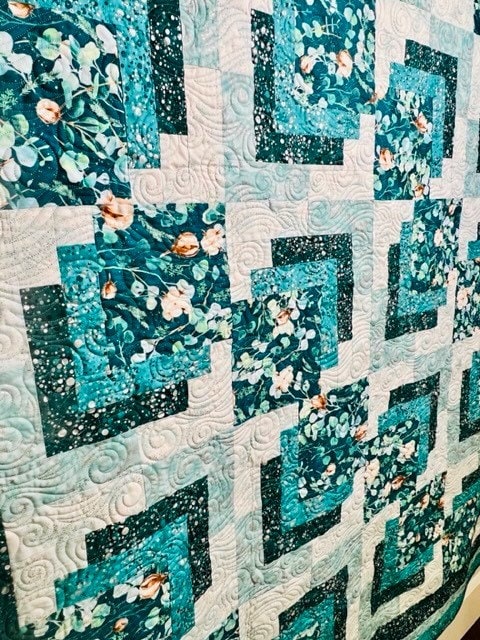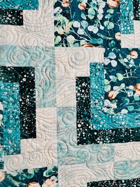 Crafted with high-quality, quilt-shop fabrics, this blanket features a gorgeous palette of teals and blues, accented with subtle silver speckles that sparkle like fresh snow. If you adore cool winter colors and cozy textures, this quilt is made for you.