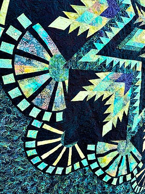 Materials: 100% quilt shop quality cotton batik fabrics; 80/20 cotton/poly batting.